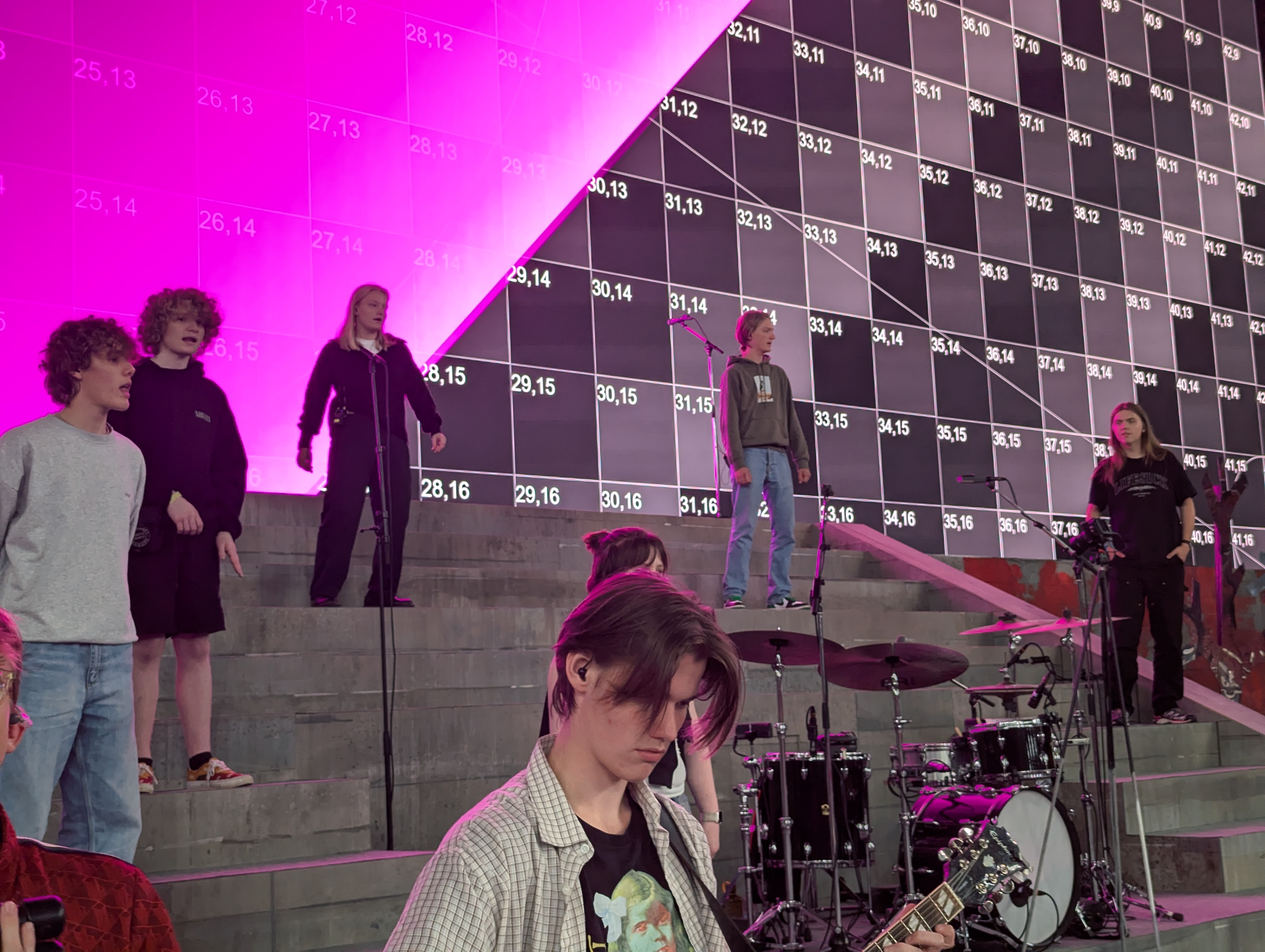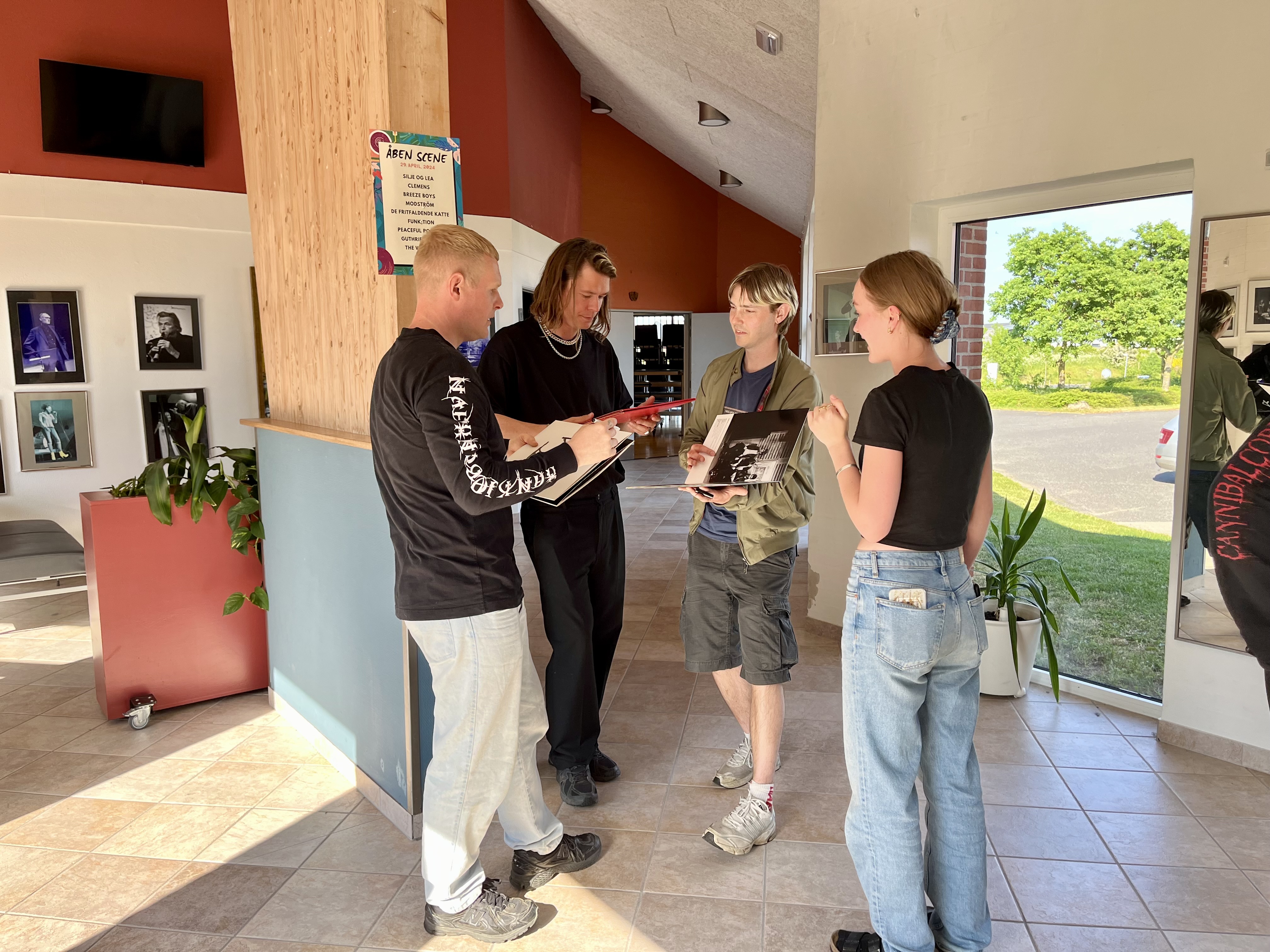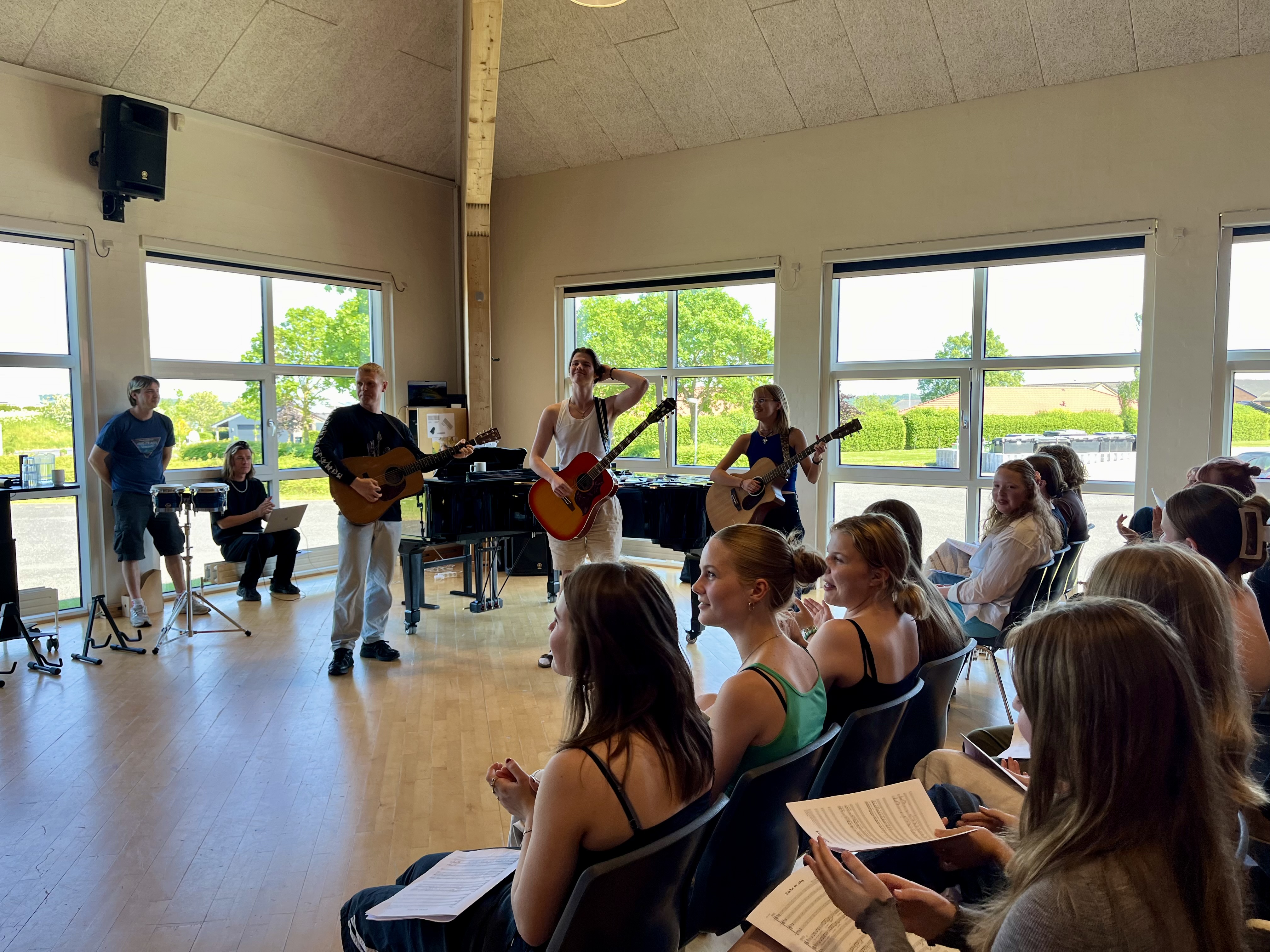 2024 blev et forår med et af de største musikalske projekter i skolens historie. Vi blev kontaktet i januar om vi havde lyst til at være med i parken. Mette Poulsen, vores korlærer lavede efter et ønske et nyt korarrangement til nummeret "Sikke en sang". Niels og de andre MO99 var på besøg et par gange hen på foråret og delte ud af kram og autografer og et par uger inden den store performance i parken blev nummeret indspillet i lille sal. Sikke en sang. TUSIND TAK for muligheden. (Skulle det være en anden gang...)