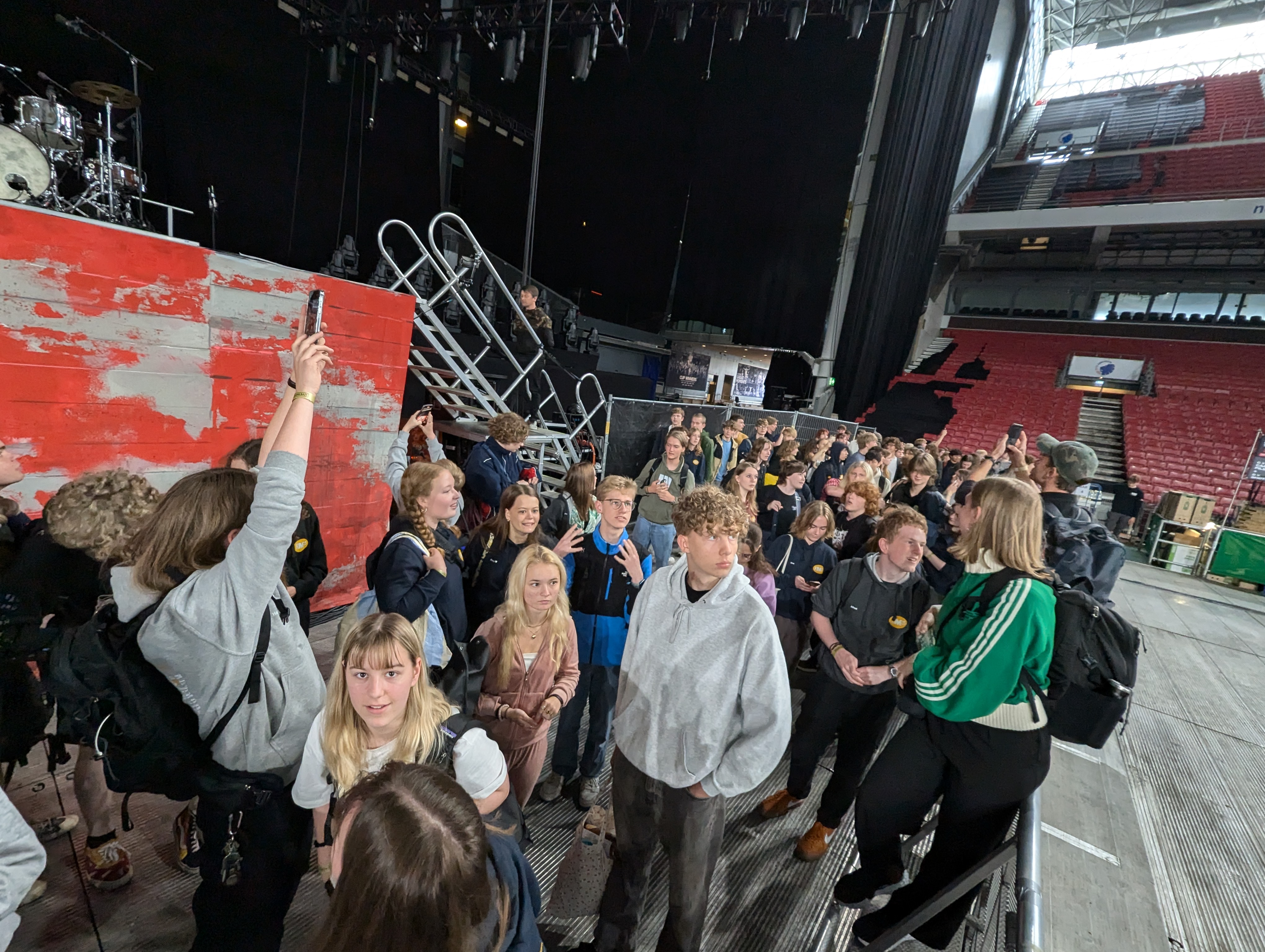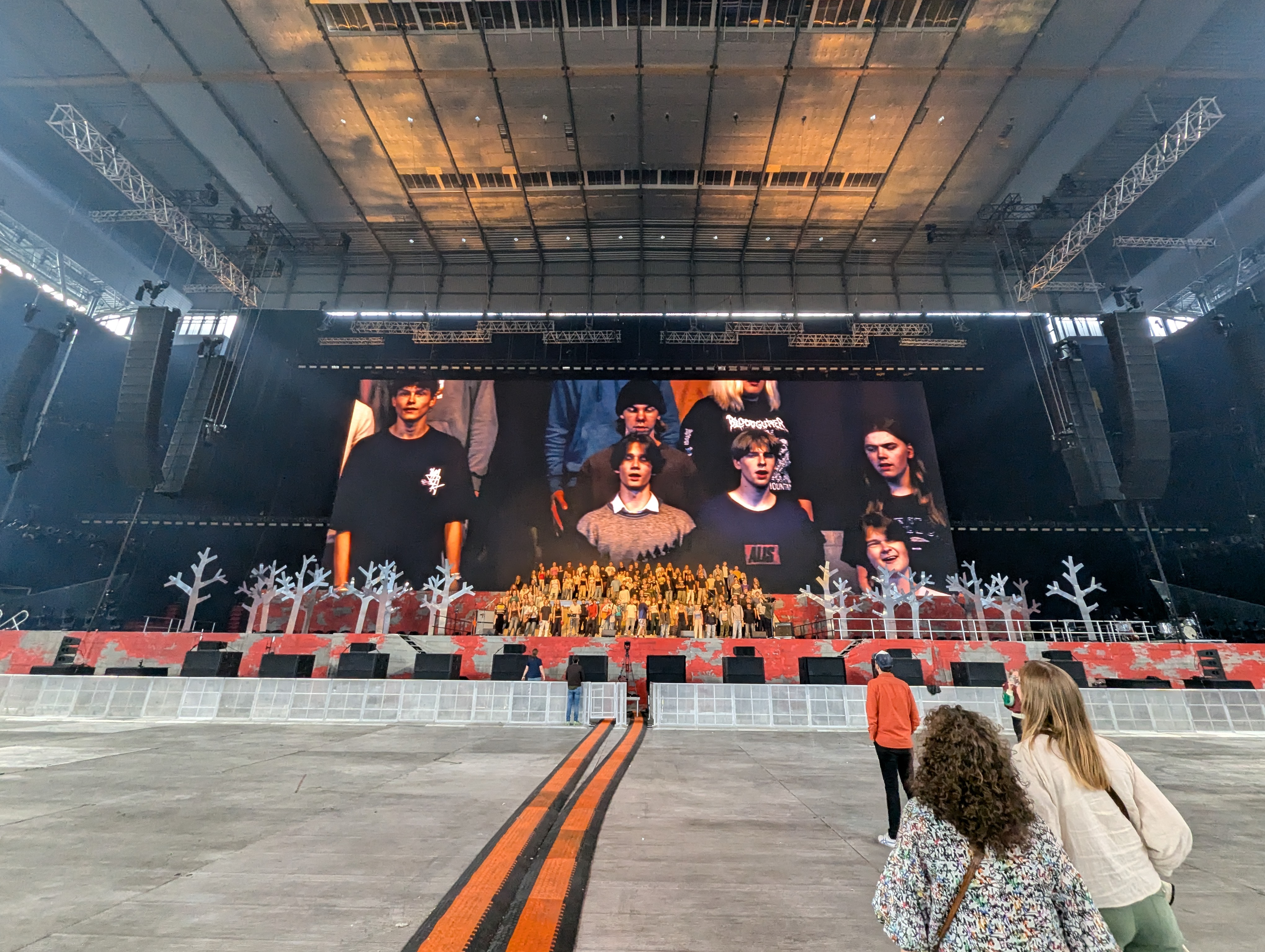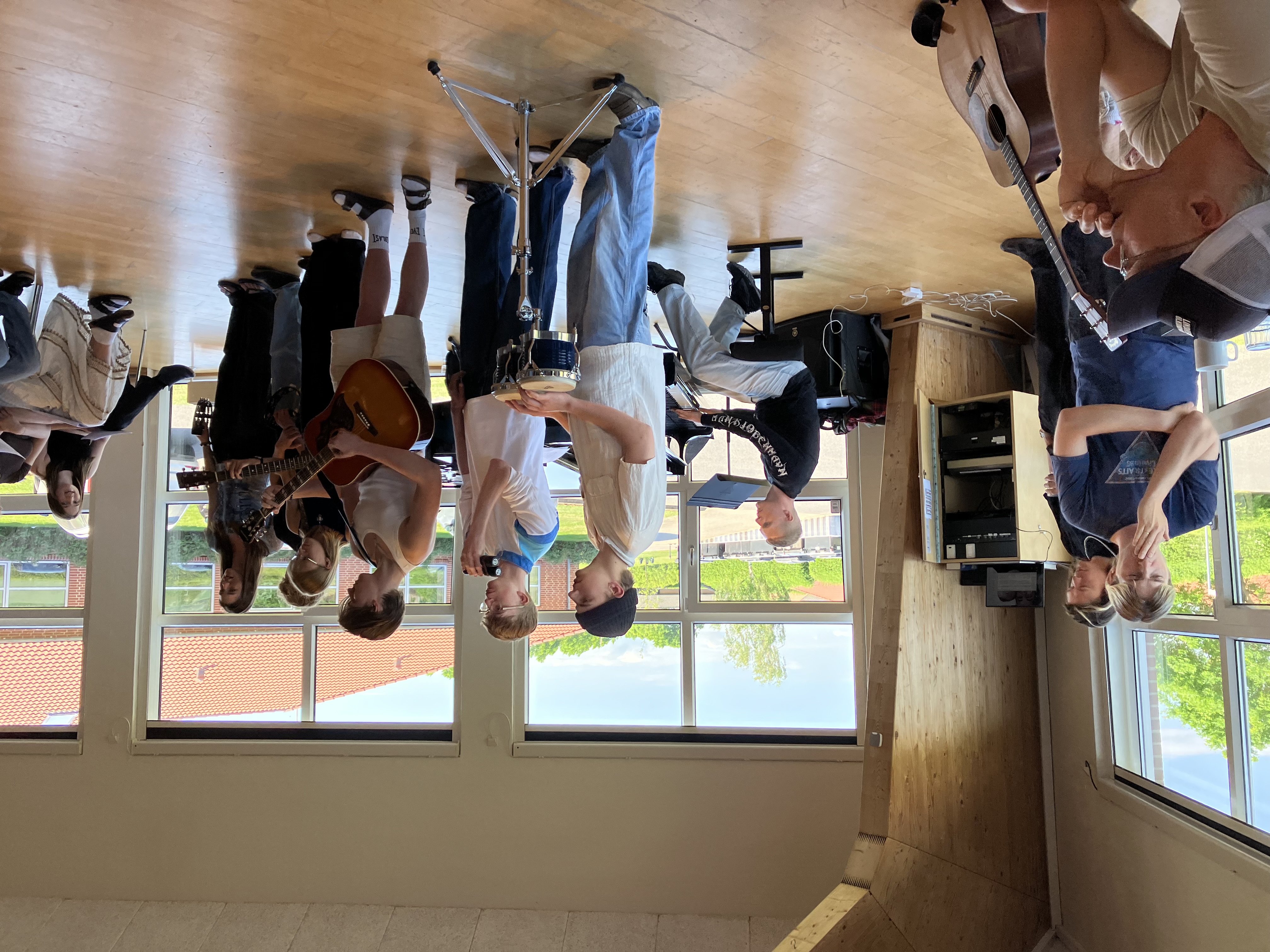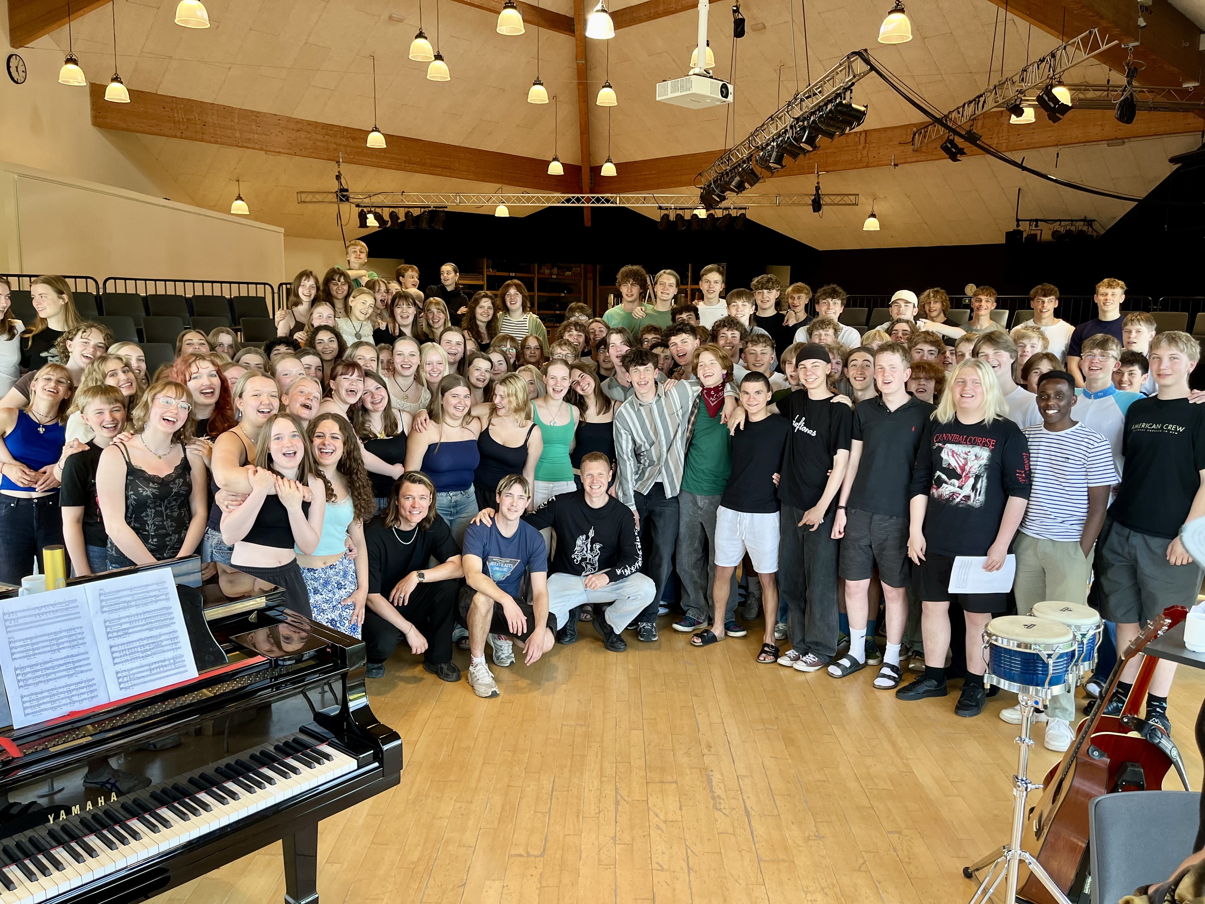 2024 blev et forår med et af de største musikalske projekter i skolens historie. Vi blev kontaktet i januar om vi havde lyst til at være med i parken. Mette Poulsen, vores korlærer lavede efter et ønske et nyt korarrangement til nummeret "Sikke en sang". Niels og de andre MO99 var på besøg et par gange hen på foråret og delte ud af kram og autografer og et par uger inden den store performance i parken blev nummeret indspillet i lille sal. Sikke en sang. TUSIND TAK for muligheden. (Skulle det være en anden gang...)