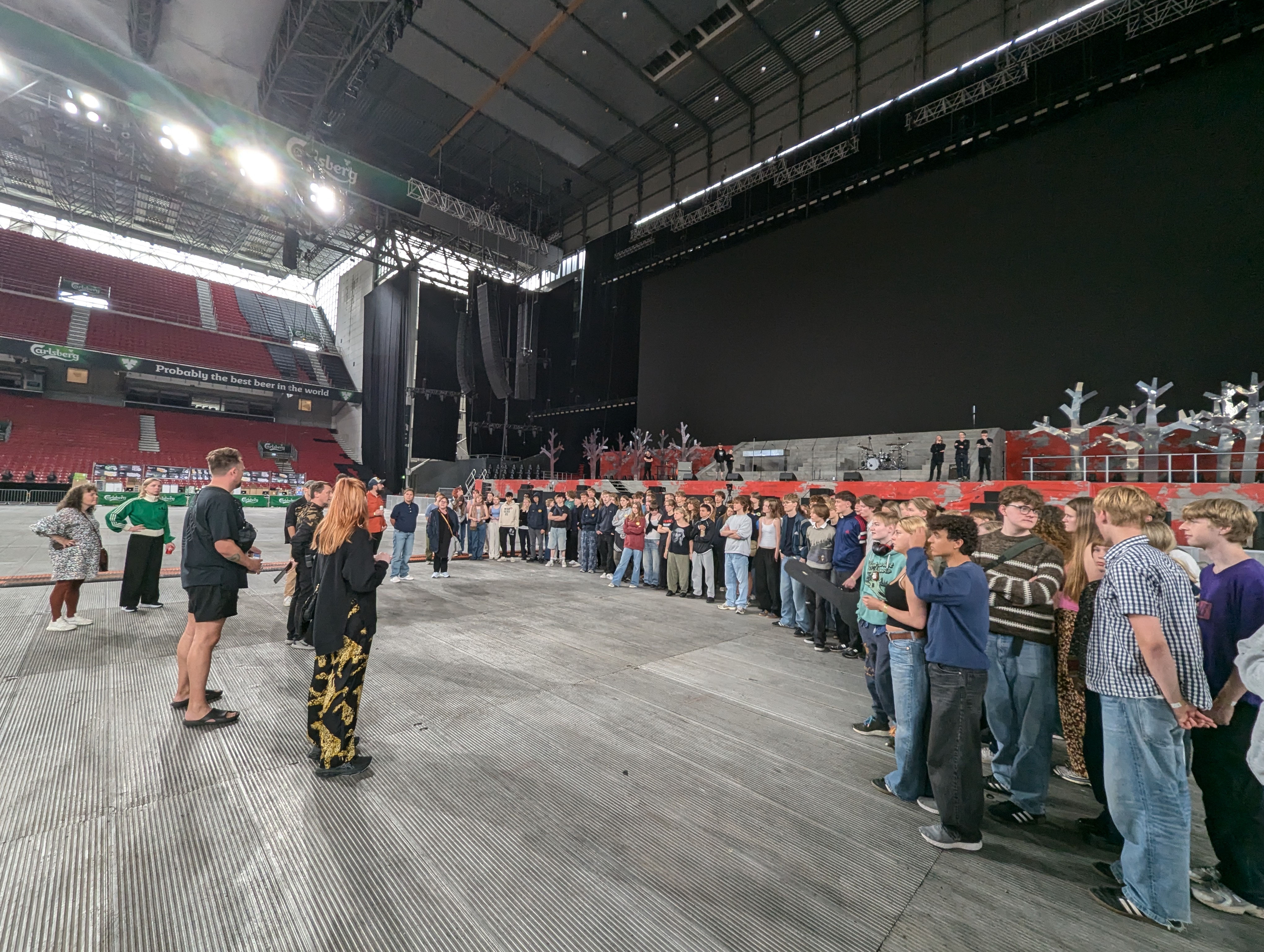 I de sidste 5 år er der skabt en helt særlig relation i mellem det danske rockband Minds of 99 og Klejtrup Musikefterskole. En forbindelse der kulminerede i en helt ekstraordinær oplevelse, da årgang 23/24 d. 23.juni blev inviteret til at synge foran 45.000 mennesker i parken som en del af bandets 3 dages gigashow. Det blev en uforglemmelig oplevelse for alle os der var med og det begejstrede publikum, der blev mindet om musikkens kraft og om ungdommens og efterskolefællesskabets magi. Se video og billeder fra aftenen her - og læs mere om vejen hertil nedenfor.